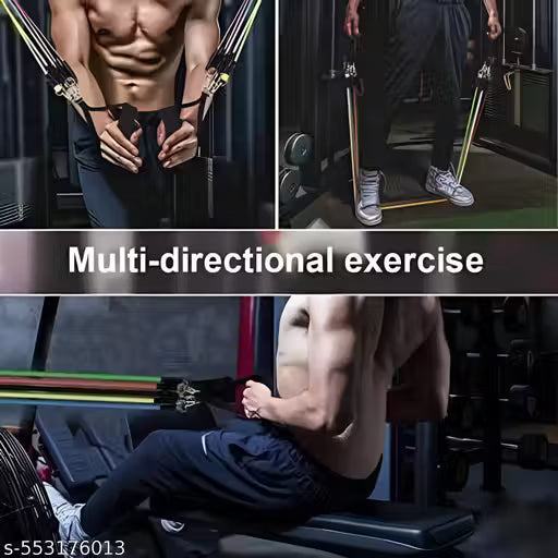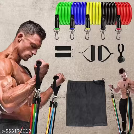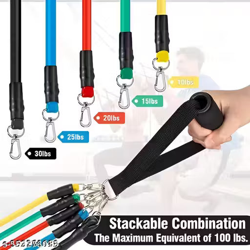 Elevate your fitness routine with the 11-in-1 Resistance Bands Set, crafted for both men and women. Made from durable latex, this versatile set includes five stackable bands (10-50 lbs resistance), foam handles, door anchor, ankle straps, hand grips, and a convenient carry bag. Perfect for home workouts, it supports fat loss, muscle building, strength training, yoga, Pilates, and pull-ups. Achieve full-body toning and improved endurance without the need for a gym. This all-in-one kit adapts to your fitness level, helping you reach your goals efficiently and comfortably.