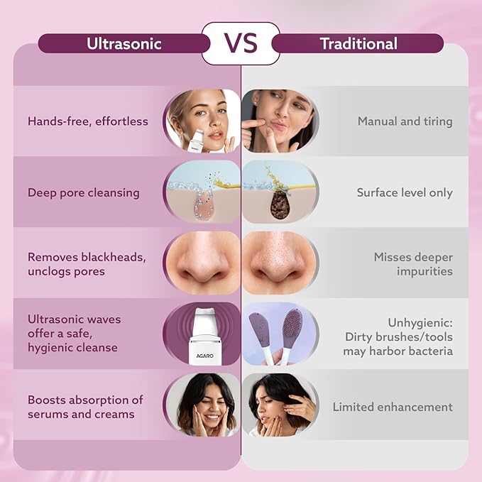 AGARO Ultrasonic Facial Skin Scrubber for Wet Skin, Blackheads Remover and Facial Pores Cleaner with 4 Modes, Stainless Steel Spatula Safe for Skin, 2 Silicone Covers Included, Rechargeable, White