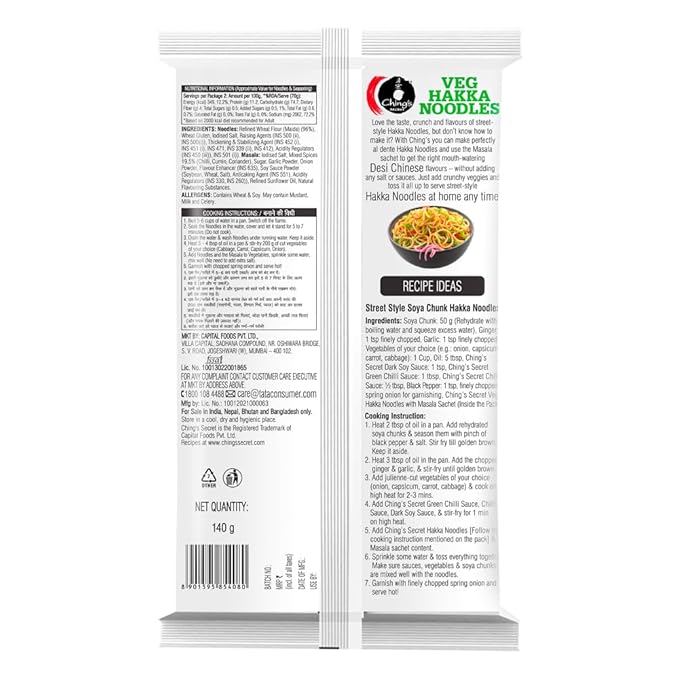 Enjoy the authentic Chinese taste of Ching's Veg Hakka Noodles, crafted from refined wheat flour without any artificial flavors or preservatives. Each 150g packet delivers a wholesome, delicious meal that's both convenient and natural, making it perfect for quick, healthy dining. Choose Ching's for flavor you can trust and quality you will love.
