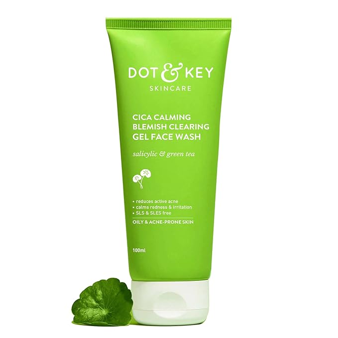 Dot & Key CICA Face Wash for Acne Prone Skin, 2% Salicylic Acid with Green Tea | For Oily & Sensitive Skin | Sulphate Free for Men & Women | Oil Control Face Wash with Zinc | 100ml