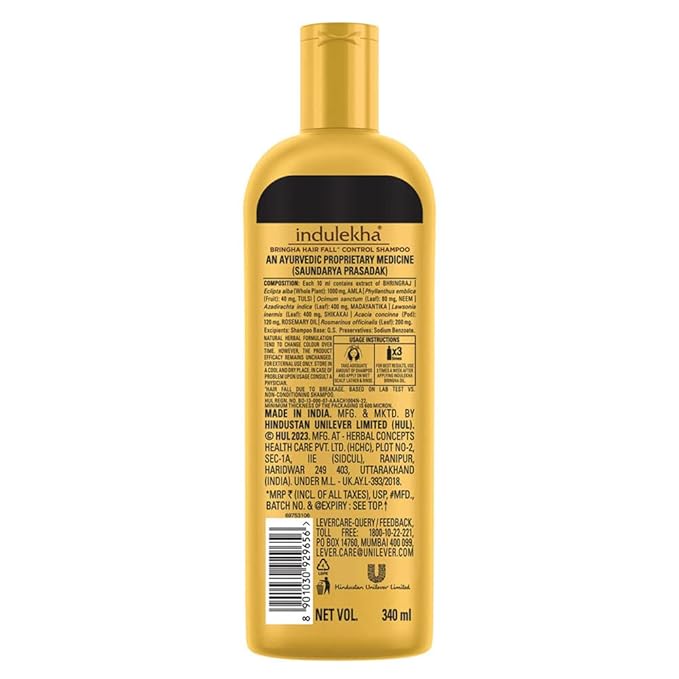 Indulekha Bringha Shampoo, Proprietary Ayurvedic Medicine For Hair Fall, Free From Parabens, Synthetic Dyes And Synthetic Perfume, 340ml