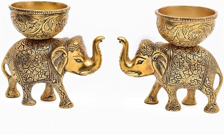 LABHCART Brass Elephant Urli Bowl: Action Ethnic Home Decor For Floating Flowers,Candle Lamps,Temple Room-Traditional Diwali Decoration Gift,500Ml