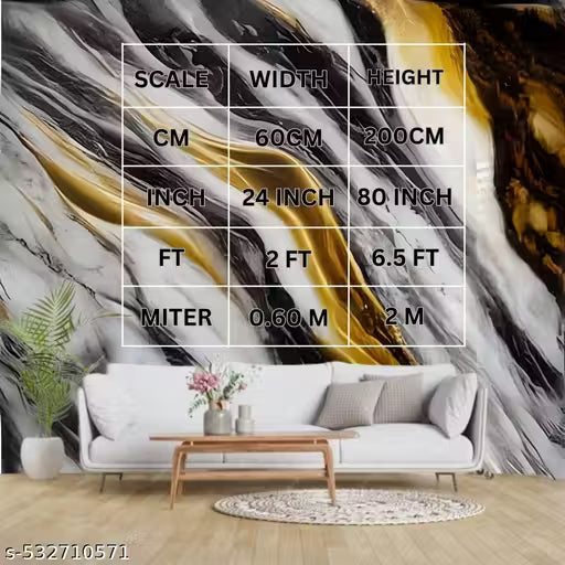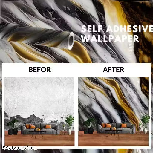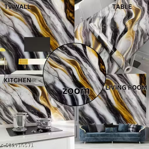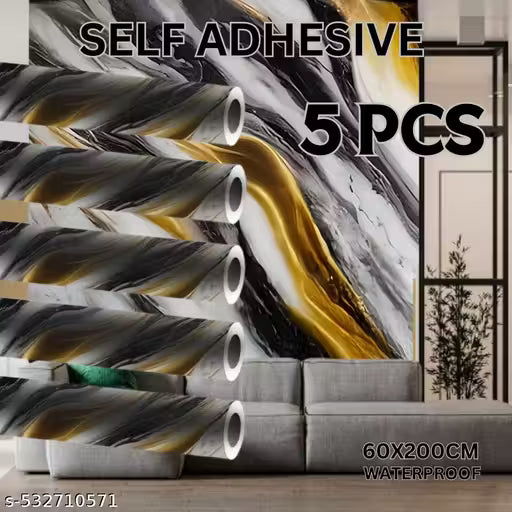 Transform any smooth surface with this Long Lasting Black Gold Marble Wall Sheet set. Crafted from durable vinyl, these wallpapers offer a sleek abstract design that adds elegance to kitchens, offices, hotel spaces, kids' rooms, and more. Measuring 60x200 cm per sheet, the set of five is easy to apply and resistant to wear, ensuring a lasting upgrade to your walls. Its easy-to-clean surface makes it perfect for high-traffic areas, combining style and practicality effortlessly. Elevate your space with a modern, luxurious look that lasts.