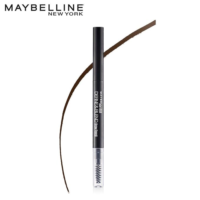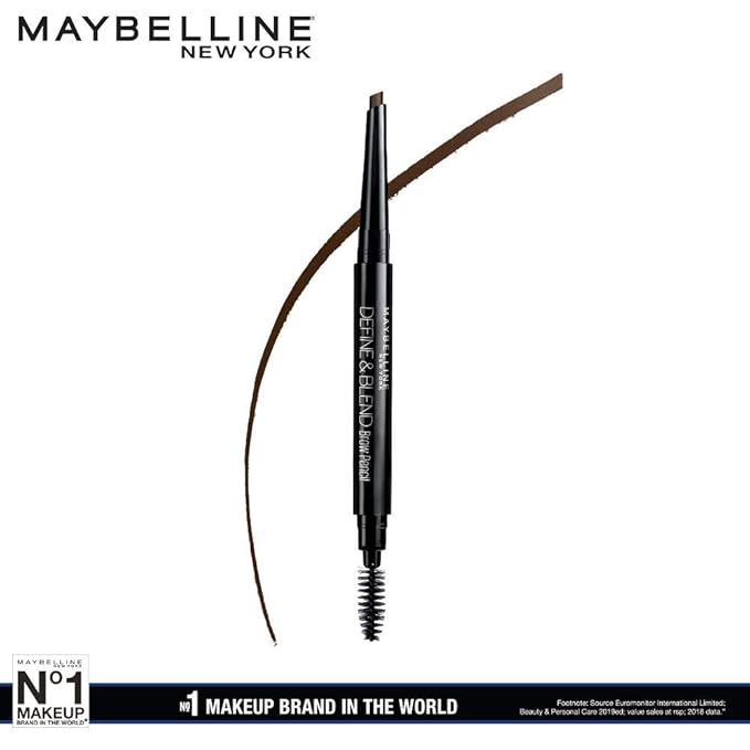 Maybelline New York Brow Pencil, With Spoolie, Long-lasting and Natural-looking Results, Define & Blend Brow Pencil, Natural Brown, 0.16 g