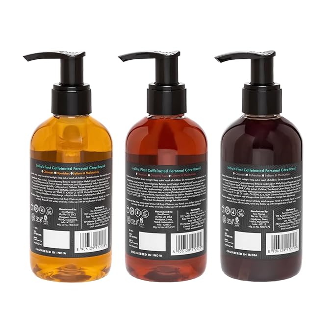 mCaffeine Coffee Body Washes for Men & Women| For Tan Removal & Deep Cleansing | Assorted Value Pack Combo | Contains 3 Shower Gels in Energizing Aroma of Berry, Almond & Cocoa | Pack of 3 | 600ml