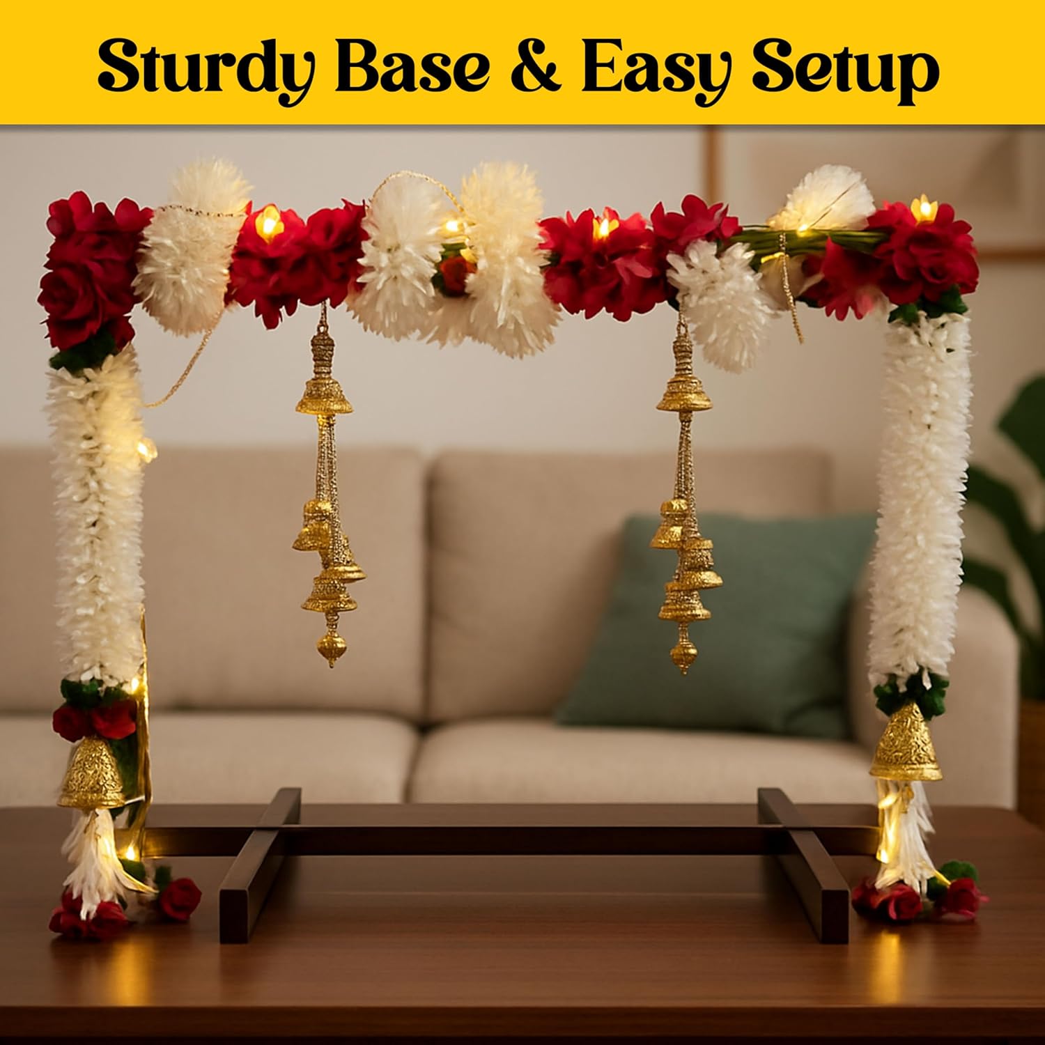 SOLOBOLO Mandir Foldable Backdrop Stand for Ganpati ,Navratri,Durga Pooja,Ideal for Home Mandir and Office as Backdrop Frame, Festival Decoration Item (24x18 inch)