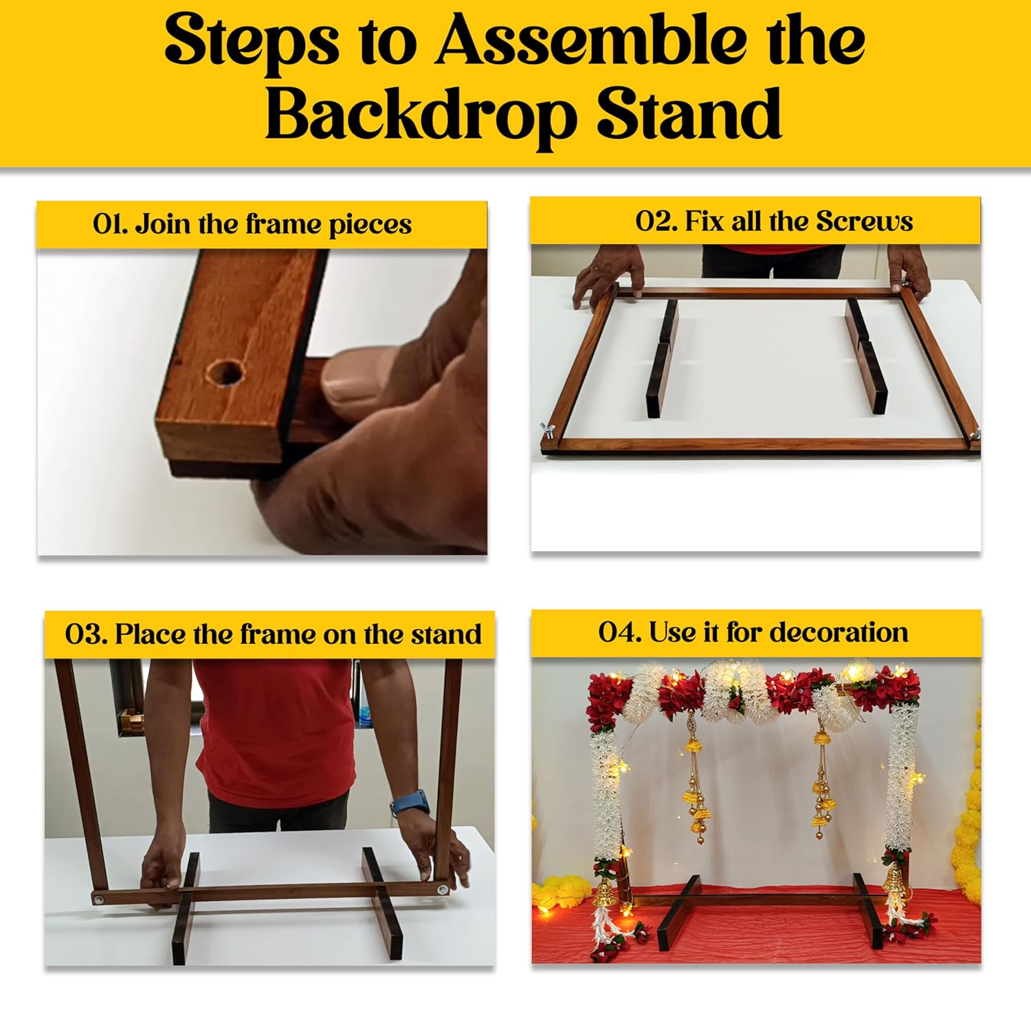 The SOLOBOLO Mandir Foldable Backdrop Stand is a versatile and space-saving product, ideal for home mandirs and offices. It serves as a backdrop frame for festivals like Ganpati, Navratri, and Durga Pooja.