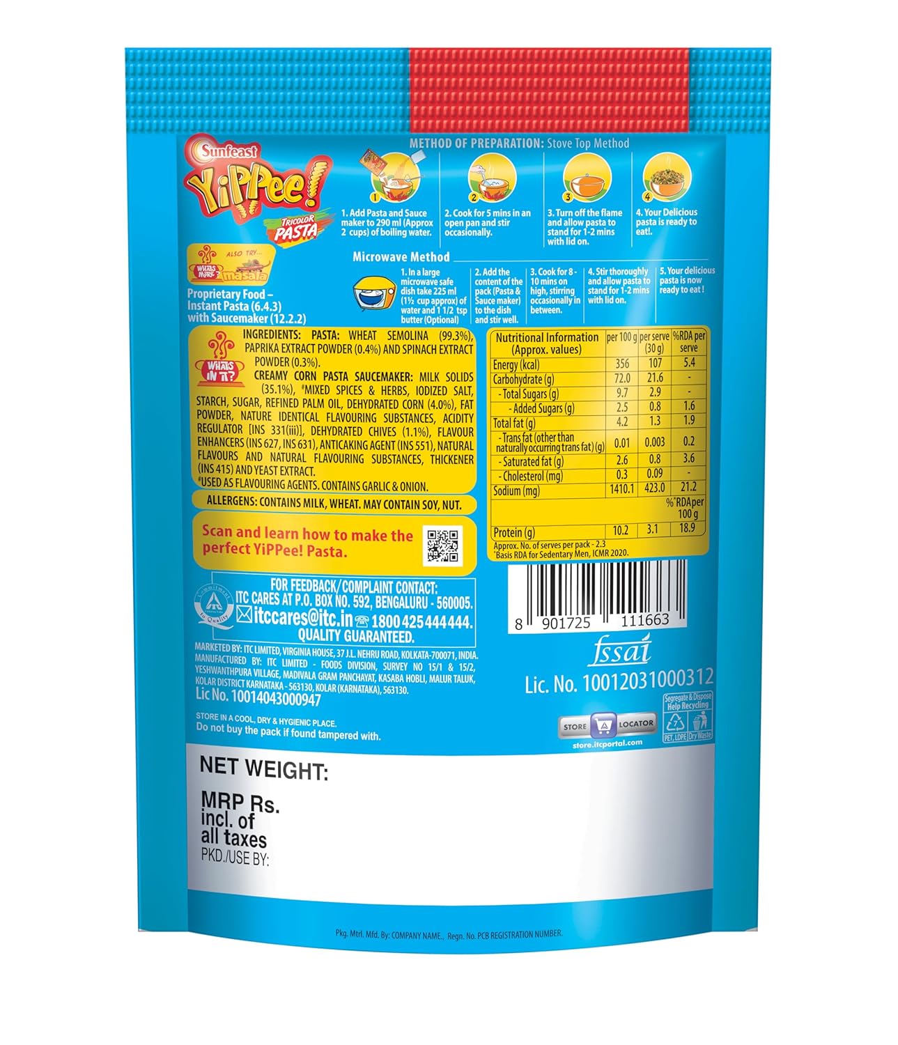 Sunfeast YiPPee! Tricolor Instant Pasta, Creamy Corn, 65g