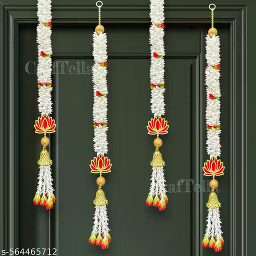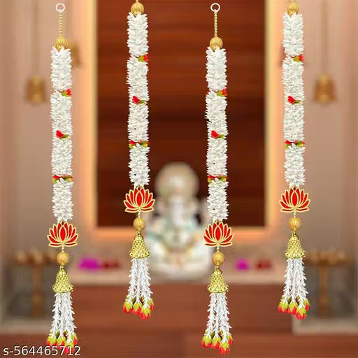The CrafTella Lotus Hanging 4 Pcs -30 INCH| Floral Wall Hangings, Temple Decoration Items, Backdrop for Pooja Decor, Pooja Room Decorate Items| Diwali Decorative Items |Offwhite - Fabric |