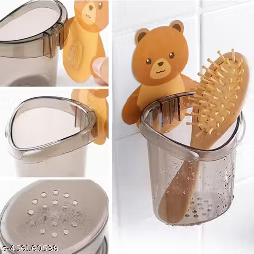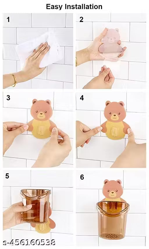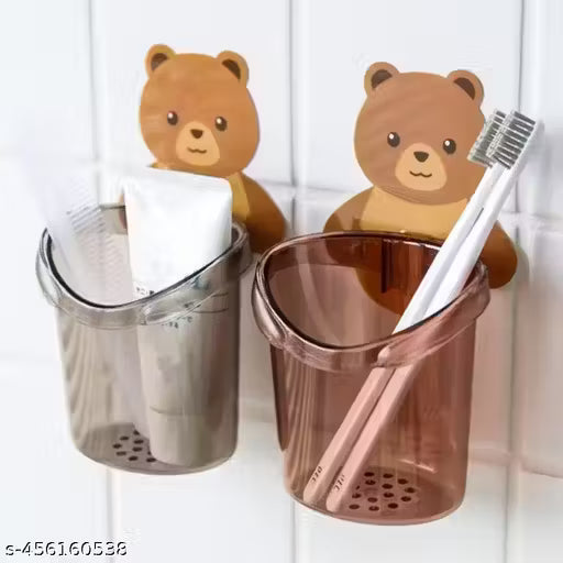 Make toothbrushing fun and organized with this 2-piece set of teddy bear-shaped plastic toothbrush holders. Designed with a self-adhesive backing for easy wall mounting, these holders keep toothbrushes and toothpaste neatly stored while adding a playful touch to any bathroom. The brown teddy bear design encourages kids to enjoy their dental hygiene routine, while built-in drain holes help keep brushes dry and clean. A charming and practical solution to keep your bathroom tidy and your children excited about brushing their teeth.